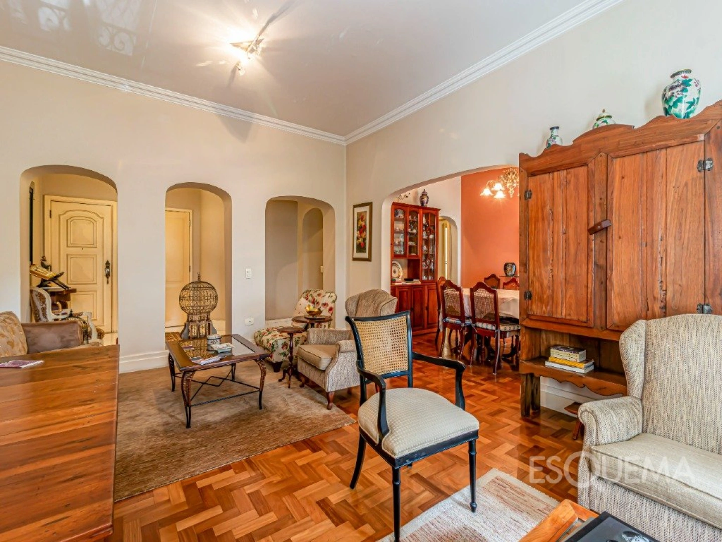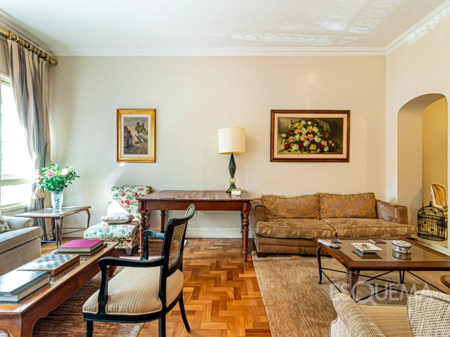 Apartamento com planta bem distribuída, pé-direito alto e ambientes iluminados por amplas janelas. O living se integra à sala de jantar, ao terraço e ao lavabo, criando um espaço agradável para o convívio. A cozinha é espaçosa, com armários planejados, e se conecta à área de serviço com dependência para funcionárias. Na área íntima, 2 dormitórios, sendo 1 suíte, além de banheiro adicional e escritório. São 2 vagas de garagem. Em região nobre dos Jardins, o imóvel está cercado por infraestrutura completa de comércio, lazer e serviços, com fácil acesso às principais ruas e avenidas da cidade.