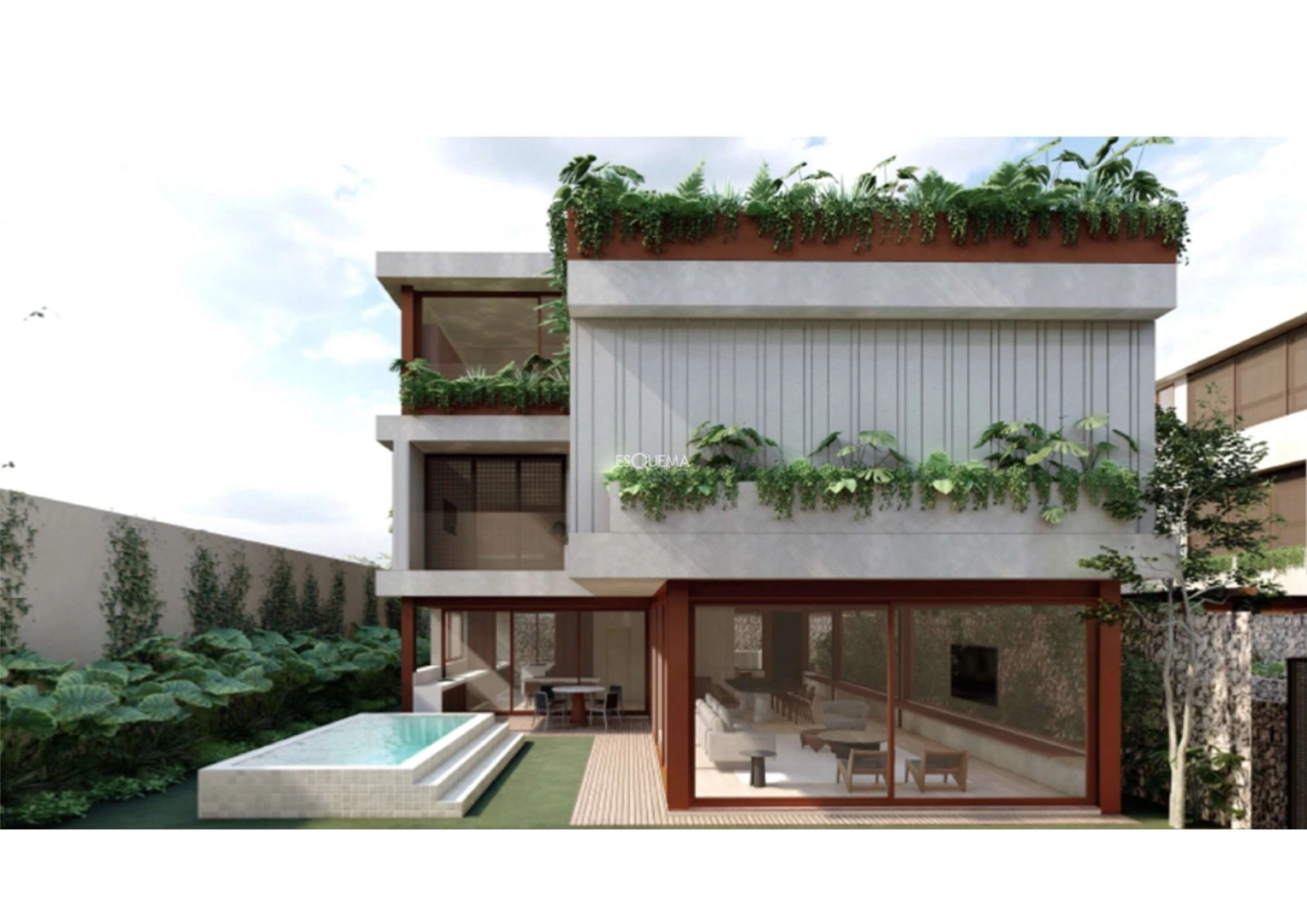 Casa em condomínio novo, com projeto que prioriza a natureza, paisagismo exuberante e ambientes integrados. A arquiteta Bianca Pinhão, que assina o projeto, criou uma vila com apenas 5 casas. Possui piscina privativa, com espaço verde e rooftop com vista para o bairro e para a copa das árvores. Há living integrado à área externa, ala íntima com 4 suítes e último andar que pode se adaptar às necessidades dos moradores. Está próxima ao Clube Pinheiros, ao Clube Hebraica e aos Shoppings Iguatemi e Eldorado.