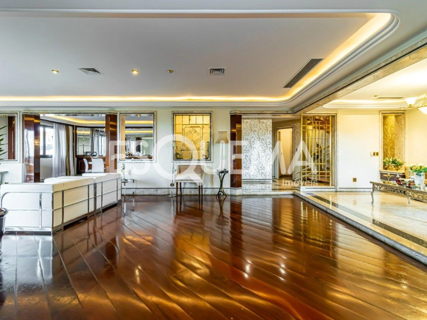 Cobertura que oferece luxo, conforto e espaço em um dos bairros mais nobres da cidade. Com ambientes amplos e uma área de lazer incrível, o imóvel é perfeito para quem busca qualidade de vida. No piso superior, conta com 3 salas, bar, choperia, churrasqueira, forno de pizza, piscina e espaço fitness. No piso térreo, living para 3 ambientes com varanda, sala de jantar, sala de almoço, escritório com sacada e lavabo. Suíte master com 2 closets e 2 banheiros, além de 3 suítes espaçosas repletas de armários. Cozinha planejada Kitchens, sala íntima, área de serviço e dependências para funcionários. São 6 vagas de garagem (4 livres) e depósito. Condomínio da Construtora Ricci, com piscina coberta, salão de festas e academia.